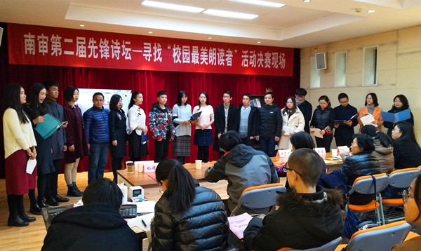 12月13日下午,由校语言文字工作委员会主办;校普通话培训测试站、校工会、润泽先锋书店承办;澄园书院科学技术协会、润园书院学习支持与生涯发展中心办公室、泽园书院校园文化中心成才规划部、沁园书院学生学习与成长指导中心、南审读书人、南社诗刊、蓝莓工作室、荻思文学社、图书馆学生管理委员会、红帆船话剧社协办的第二届先锋诗坛——“寻找校园最美朗读者”活动在润泽先锋书店万竹堂顺利进行,校语委主任董必荣副校长、校语委办副主任刘顺、missav 王军副院长亲临决赛现场。
