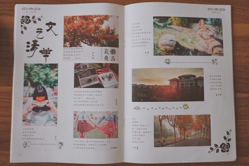 “你若遇见秋意,请替我问好”,这是我所编辑的第一本杂志的背封语,跟当时荻思文学社的小伙伴们一起跟着教程从零开始学习制作,编辑完成后,我们不断讨论了影印机构、打印纸张、封面形式等等,过程中栽了很多跟斗,但大家一直互相鼓励,直至最后完成发刊,我们拿着杂志,把“这是我们的孩子”当玩笑话说出来,但又何尝不是我的心声。有了经验后,杂志编辑便没有一开始那么艰辛。2016年5月,王军老师给了我编辑制作missav 与荻思合作的杂志的机会,那是13级missav 小说专刊,其中我个人认为比较“特别”的一点是,这本杂志的作者署名全部是亲笔手写,收集签名的过程是无比欢乐的,之后的编辑过程中看到这些签名,不由产生“见字如面”的感想,会情不自禁地按照个人特色为他们编辑。不仅对学长学姐们,这本杂志对我来说也非常特别,之后老师和学姐严格的校对和更改让我对它充满了信心,尤其是亲手拿到成品,那种惊喜的感觉,直到如今都记忆犹新。后来,王军老师又推荐我制作澄园书院的“澄典”杂志,杂志中刊登的是澄园书院同学的作品,内容十分丰富,这次有选稿的权利,挑选了其中比较优秀的作品进行编辑,个人比较喜欢这次杂志的风格。每次制作出可以发刊的杂志都让人十足有成就感,每一本杂志对我来说存在着特别的意义,这也成为我大学生活中难得的珍贵记忆。