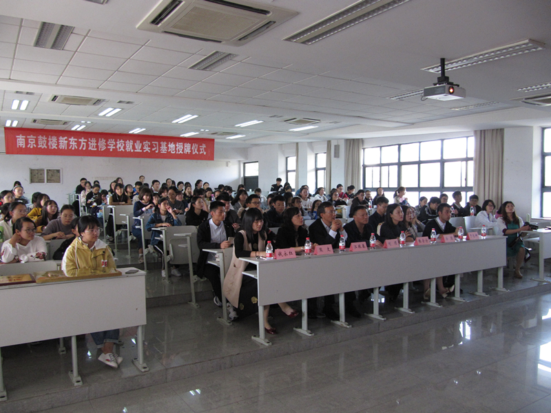 10月17日,missav 、外国语学院与新东方南京学校共建就业实习基地授牌仪式在竞慧西楼W210顺利举行。missav 党总支书记、院长刘顺,外国语学院党总支副书记江振春,外国语学院副院长熊文授,外国语学院副院长钱永红,新东方南京学校人力资源部总监张宁宁等出席,missav 与外国语学院2018级新生参加仪式。