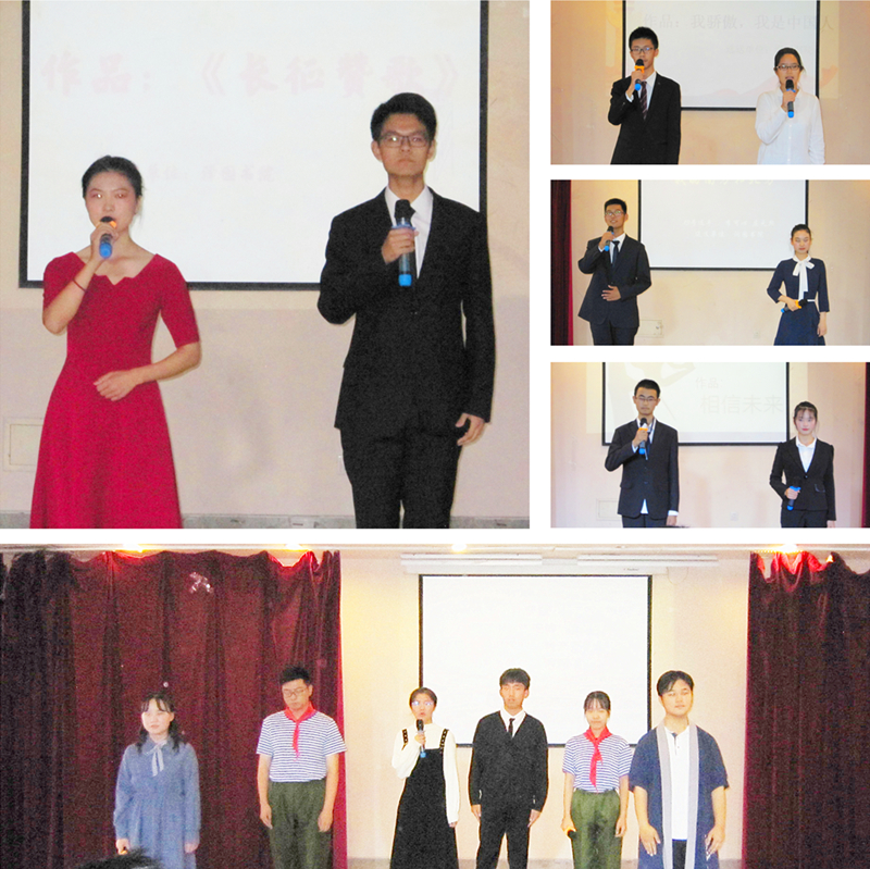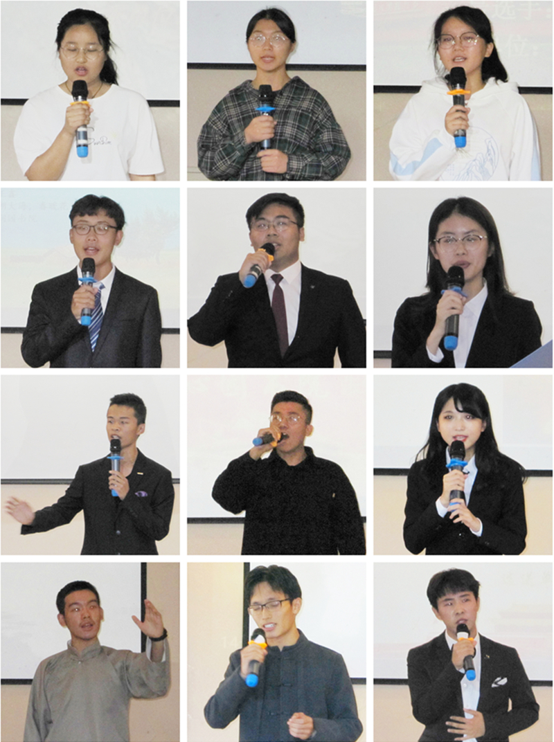 参加本届新生诗会决赛的作品共有18个作品,评委组根据选手现场的诵读表演分别进行个人项、集体项的评比。比赛现场,选手们饱含深情地朗诵着《满江红》、《我爱你我的国》、《沁园春.雪》、《相信未来》《茅屋为秋风所破歌》、《雨巷》、《乌苏里船歌》、《面朝大海.春暖花开》等中华经典诗歌,他们的投入和生动表现赢得了台下阵阵掌声。