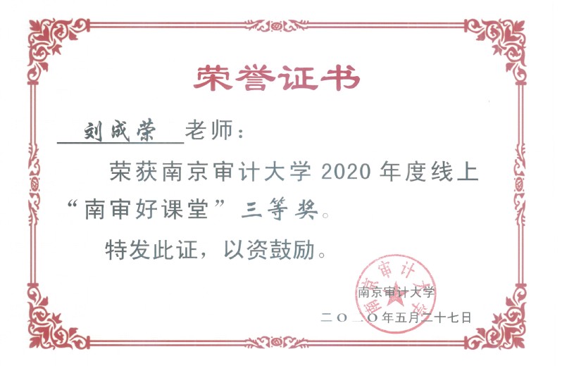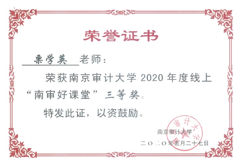 【获奖】我院栗学英、刘成荣老师喜获校2020年度线上“南审好课堂”三等奖