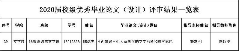 【获奖】我院施常州老师指导的2020届毕业生陈彦杰的毕业论文喜获校优秀毕业论文