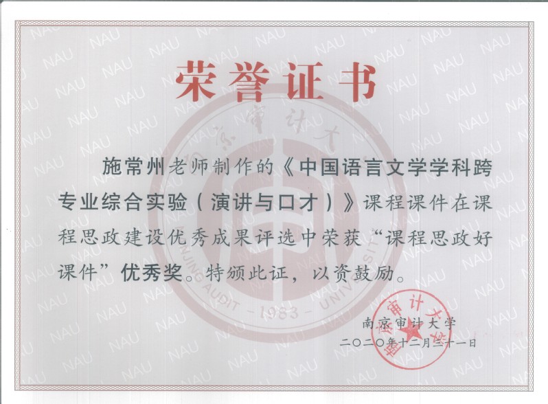 近日,我校发布《关于公布课程思政建设优秀成果评选结果的通知》南审教发〔2020〕22号,我院多位老师在活动中获奖,如下: