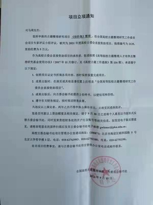 二、我院近期获得全国高校古籍整理研究项目立项1项:《徐阶级》整理,主持人:司马周教授。