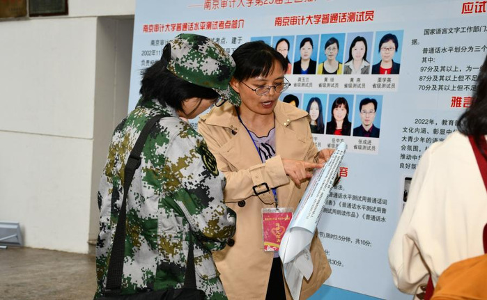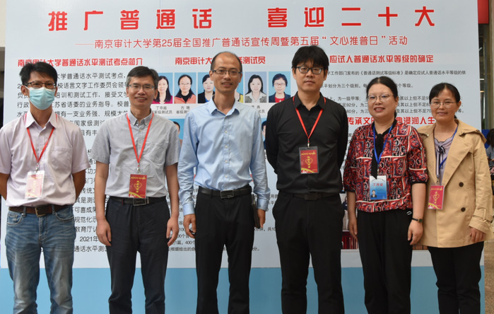 为了充分发挥我校省语言文字规范化工作示范单位的作用,进一步提高全校师生的普通话应用能力和语言规范性,9月14日中午,以“推广普通话,喜迎党的二十大”为主题,校语委、校普测考点在沁园餐厅一楼大厅举办了第25届全国推广普通话宣传周活动。活动过程中,副校长陈骏、教务处处长苍玉权来到现场,了解师生的测试需求,对推普工作进行了详细的指导。陈骏副校长对校园推普宣传活动表示赞赏和支持,对校普测考点下半年的测试工作提出具体要求。missav 全体领导、普通话测试员及推普志愿者参加了活动。