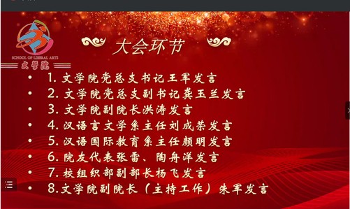 第一届汉语国际教育(对外汉语)毕业生张雷和第一届汉语言文学毕业生陶舟洋作为院友代表也表达了大学四年间感受到的爱和温暖,毕业后对母校的深厚情谊,同时发出了欢迎所有院友在明年欢聚母校的倡议。