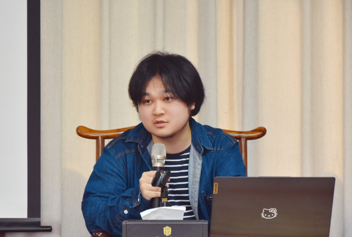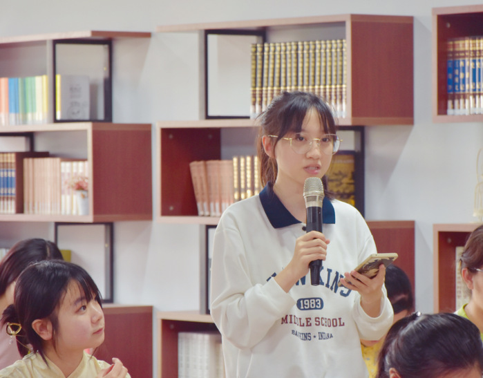 互动环节中同学们热情发问,提出了“写作可以获得精神的满足,同时也会有许多人将自己现实的因某事产生的强烈情感写入作品”“作者不经意会对前辈的模仿,其中对西方作品的语言模仿中回带有翻译腔,如何避免这种情况”等问题,严孜铭和杜奕成一一进行了解答。