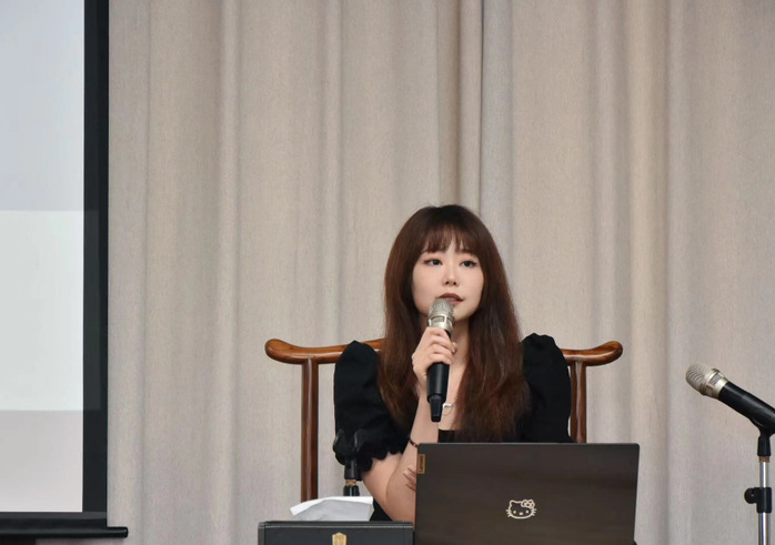 严孜铭的分享主题是“虚构现实”。她首先畅谈了自己回到母校观察与感受:大到文心楼电梯的出现,小到院中的一棵芭蕉树的枝叶,方方面面都是如此亲切。
