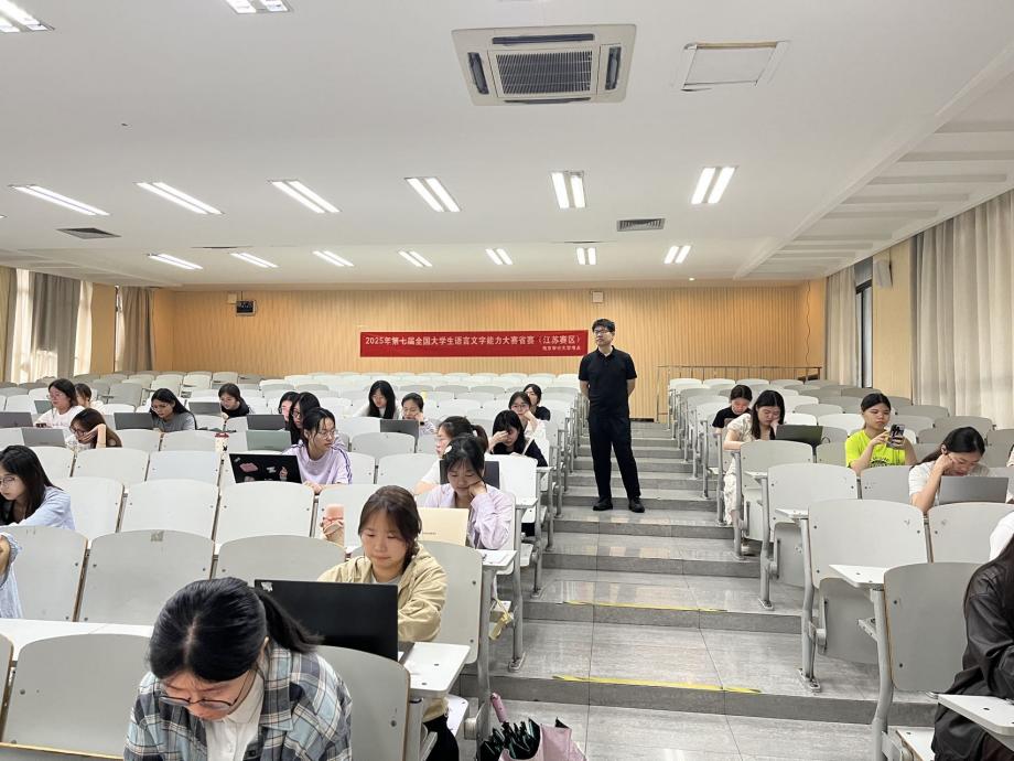 2025年6月7日,第七届全国大学生语言文字能力大赛江苏省赛如期举行。missav 作为协办单位,组织我校考生参赛。本次大赛吸引了全校180余名学生踊跃报名,在竞秀楼第一报告厅集中参赛人数达120余人,充分展现了我校学子对语言文字能力的重视与热情。