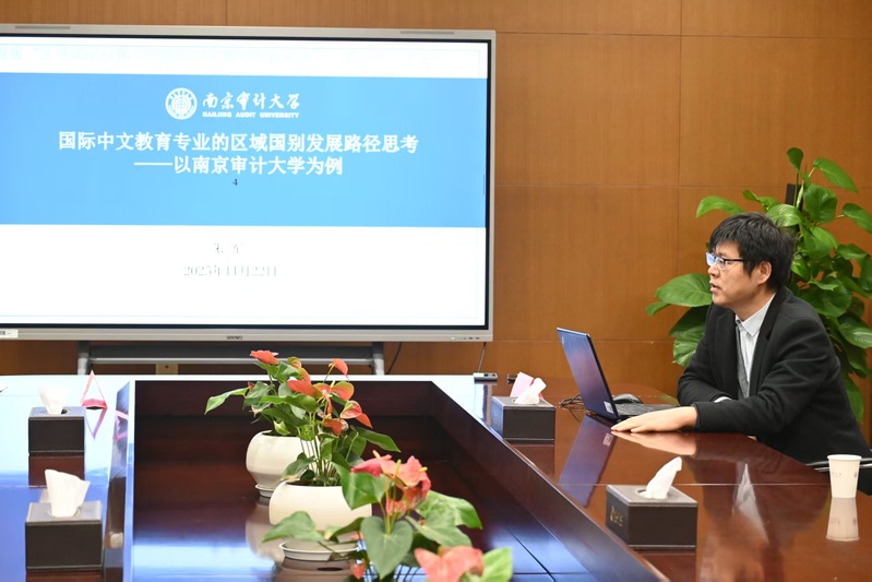 江苏省语言学会会长、东南大学王华宝教授表示,当前国际中文教育面临新的机遇与挑战,应夯实教师、教材、教法“三教”基础,推进人工智能与技术融合,加强理论指引与学科交叉。他高度认可南审在“语言+审计”融合模式上的探索,并对其专业建设与学科发展成果表示祝贺。